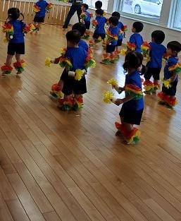 おゆうぎでは、マンボのリズムに合わせてノリノリで身体を動かして踊りました。